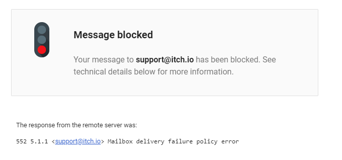 itch.io Community » itch.io » Questions & Support · Created a new topic Email blocked to support@itch.io