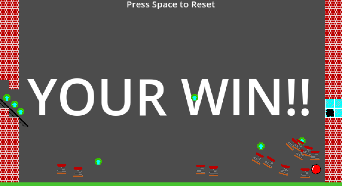Nice game! I really liked the puzzle mechanic and levels. The springs were a good idea, and the levels were just the right amount of challenge to be fun, but not overly hard. The one thing I would recommend would be spacing out the buttons. Both W, E, and R were very close together, and it was frustrating when I accidentally hit R instead of W or E. Overall, nice, fun, and pretty complete game! Good job!