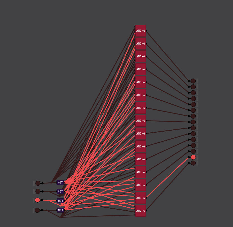 I'm new to this software and I finished watching a tutorial on how to make a CPU that can carry out basic operations and store data. However I encountered a problem that I don't know how to fix. I have this 4-15 decoder that takes a 4-bit binary number and converts it to a specific output depending on the value of the number, and a clock that continuously increments the binary input. However, let's say I have this scenario: the input is currently 0111 (7). When it increments to 8, the game will silently toggle the inputs one at a time. First it toggles the 1s digit to form 0110 (6), then the 2s digit to form 0100 (4), then the 4s digit to form 0000 (0), then the 8s digit to form 1000 (8). This presents a problem, as the 6th and 4th output silently fire for a split second and messes the entire CPU up. Is there any work around, or if Sebastian Lague himself sees this, please fix it if you can.