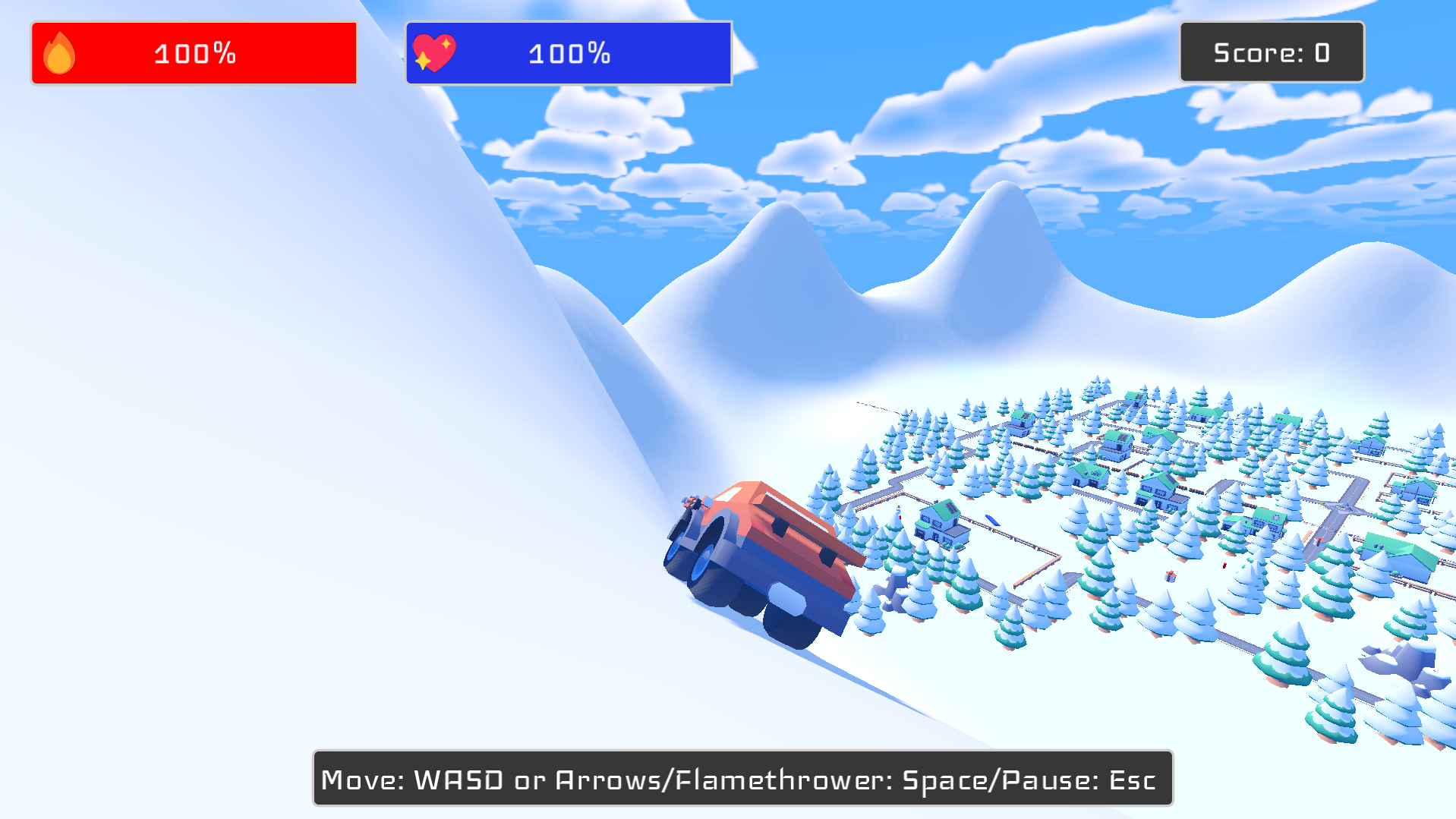 I feel as if the flamethrower taking time to melt snowmen and speedyness of the car kinda clash against eachother in a bad way too, if you want to actually score points instead of just zooming around then you'll have to slowly angle yourself towards the snowmen (or do a huge U-Turn if you go past them) and just hold space until they die :(