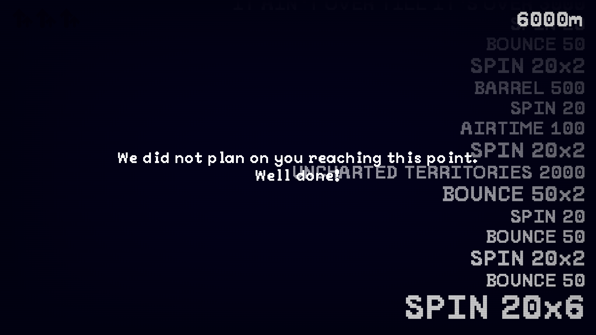I should have made the leaderboards/mode selection a bit clearer for the players though, it's really had to understand what the goal of the game is right now ! (reach 10 000m in the least amount of time / go as far as possible in 200s)