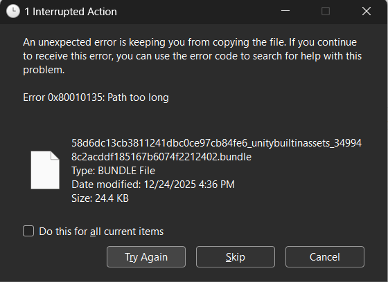 Any way to resolve this? If I skip it then the game downloads but when I run it I simply get stuck on the loading screen.
