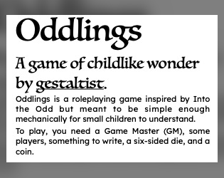 - Depending on the age and character of the kids, you may want to be even more forgiving, and also not care about balance that much. (I might give a more powerful item to a 5yo that I wouldn’t give to a 10yo if they play together.) You might even give Oddlings innate special abilities.