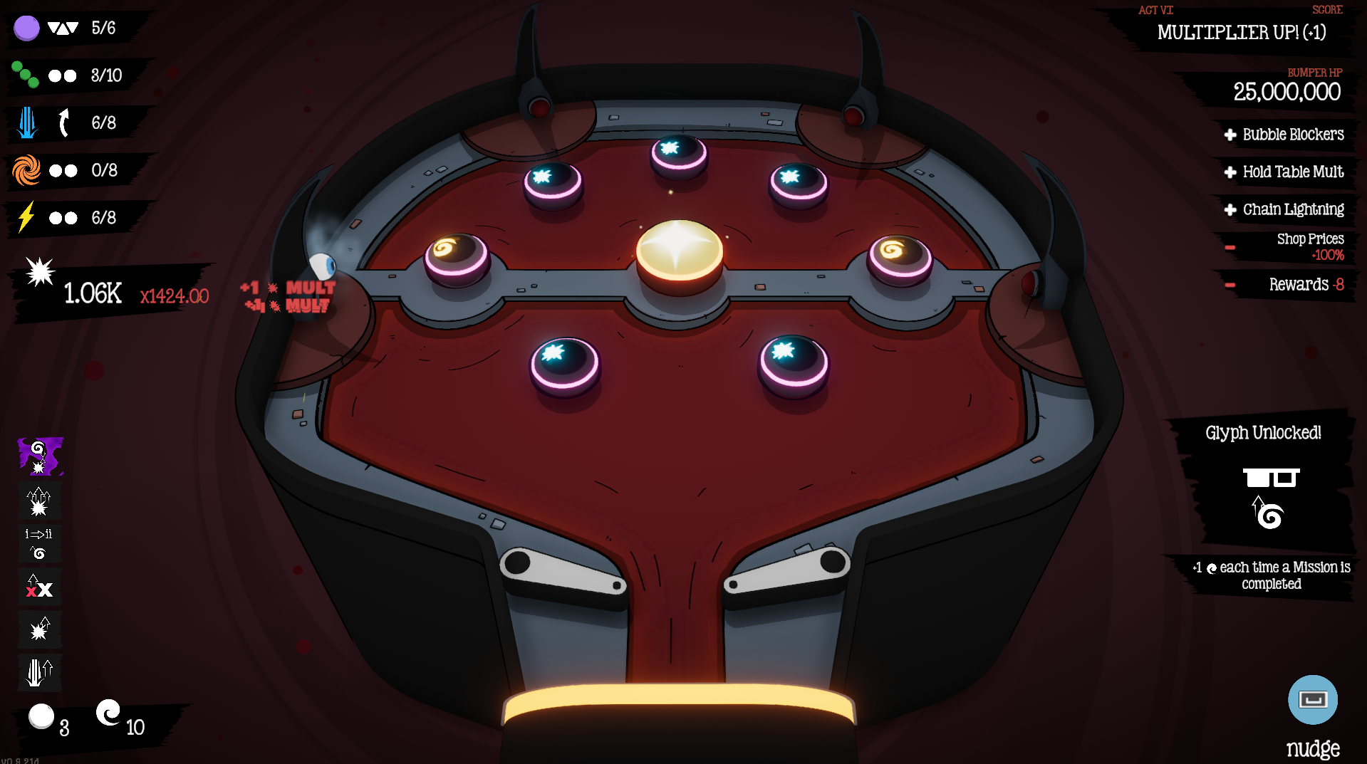 Great game, not sure if it's been posted before but ball can get stuck infinitely on the mult in the bonus game. It's possible to nudge it out.