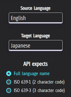 4. Put Japanese or English for source and vice versa for target, and select Full language name box