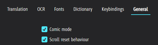 2. Check the 'Comic mode' and 'Scroll reset behaviour' checkboxes in the General tab