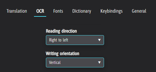1. Select Right to left reading direction & Vertical Writing orientation in the OCR tab
