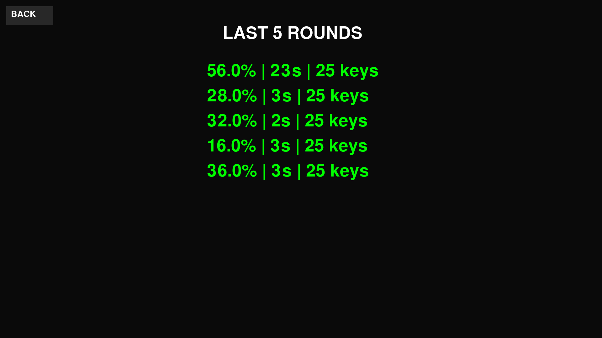 Hey everyone! I made a no nonsense app that can be used to practice exact keybinds of your choosing and build muscle memory so you can get better at that new favorite game! It simply pops up a random key from your choosing and keeps stats for the last 5 rounds for easy comparison.