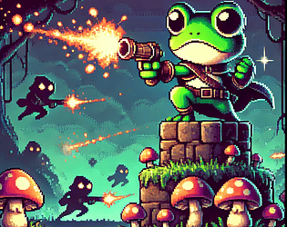 Gracias por tu comentario, lo tendré en cuenta para futuros juegos, el menú (si esta hecho con IA a partir de un concepto que le pase) y la portada hace referencia a juegos antiguos como Contra de Konami, donde su portada era representativa del juego, mas no de los gráficos. Y estoy de acuerdo contigo, la dificultad de los juegos es un error que suelo cometer en la parte de diseño de juego o diseño de niveles. el menu y la musica fue implementada en la ultima hora, hay una historia que falto poner por falta de tiempo, donde el arte fue hecho por: https://itch.io/profile/pros899 PD: el juego fue hecho en Godot :3...