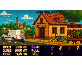 I’m currently developing a classic point-and-click adventure game inspired by Maniac Mansion and Monkey Island.