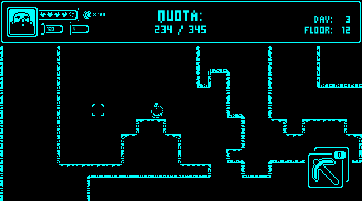 I love the art for Gizmo and mining around as him. I did not realize how the physics worked for the black blocks. I assume they have to be attached to either the close wall or the far wall to stay lifted but I was not really sure. I also encountered a few bugs where Gizmo would get caught on blocks and I would have to wiggle back and forth to get out. However, I think the difficulty curve ramped up nicely, and saving after each level makes it feel less punishing when I would make a mistake. I loved the upgrade screen, the UI was very clean and the upgrades felt impactful. Overall a good game!