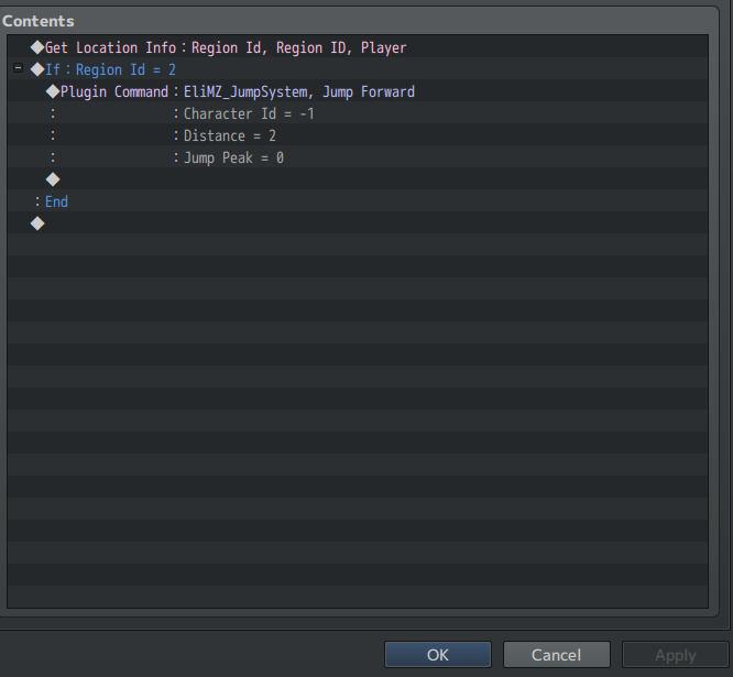 It does not auto-jump. But that is a matter of eventing. You can create a parallel common event and insert that screenshot example there. It will check if the player is on a region id, and do something when it is.