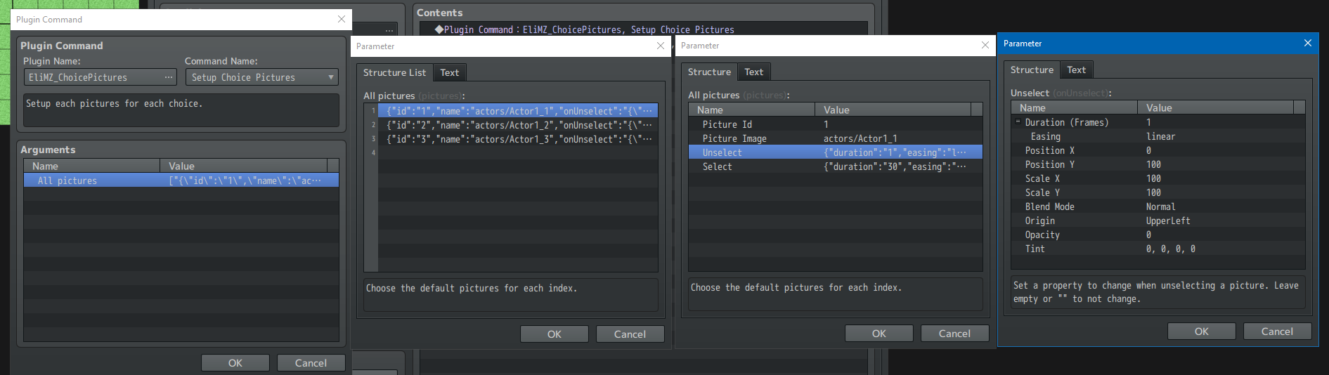 The video was from a different version. But basically, what I did was set each picture, with different id and images for each choices. But all of them have the same Unselect and Select configurations.