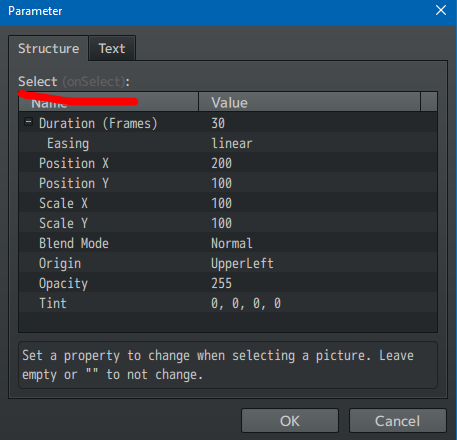 - And the select configuration with opacity = 255 and the movement.