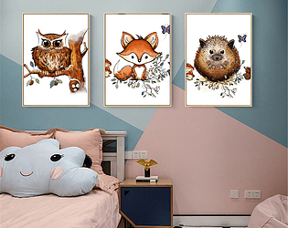 Handdrawn forest animals for books or interactive games, canvas or as wallpapers