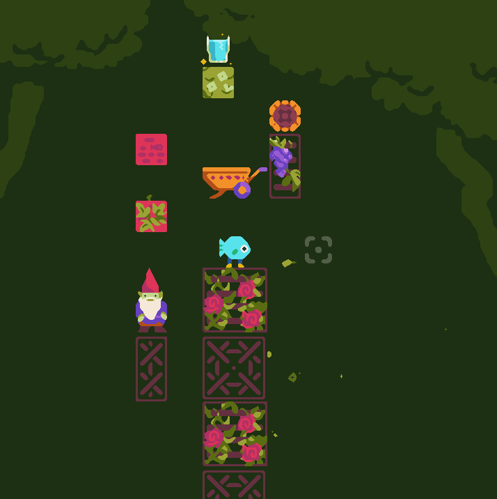 I really enjoyed the mechanic. It was fun to see what the flowers gave as well as how you could kinda think about what load out you wanted when exploring. The whole map felt really well designed. Like how the plant that roots you is placed near the catapult strength one. And having a home plant from far away. It was nice that you could figure out the abilities without needing to go to the research table as well. Felt like it fit in well with the idea you're like a florist scientist and can just observe how things are working. I think having there be different ways to collect plants spiced it up. Like when the research table told me that water plant could let me ride up the waterfall, I immediately went ohh I wanna go back and see what is up there! So those little puzzles livened the game up. I think the music loop was a little short for a game I wanted to spend time in to keep wandering around more. The plants were pretty and the well sized map was just fun to go around in. Also the capybaras were cute!