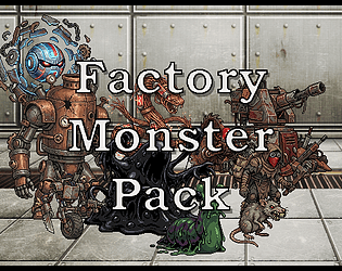 10 Pixel Art Style Monsters for RPG Maker MV, set in a broken Factory or Junkyard!