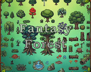 A 48x48pixel Pixel Art style tileset for RPG Maker MV, focusing on Trees, Fallen Logs, and other forest decor