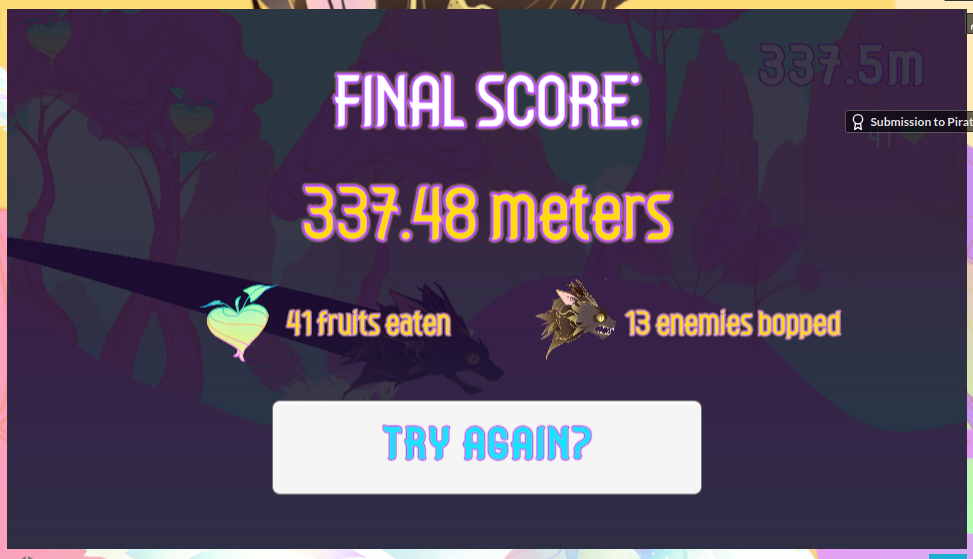 Gorgeous artwork and kind of addicting. The diving mechanic allowing you to slide off the ground is really fun and surprisingly flexible in techniques to try out; do you stay along the ground at good momentum and only dive when you're at the hill's peak? Or do you zoom over multiple hills with a well timed dive? There are benefits and drawbacks to both and varying them keeps things engaging. So far only got 177.72 meters, but only played the past few minutes, so... We'll see how far I can schwoop through the hills while admiring the lovely gradient colors. Very pretty.