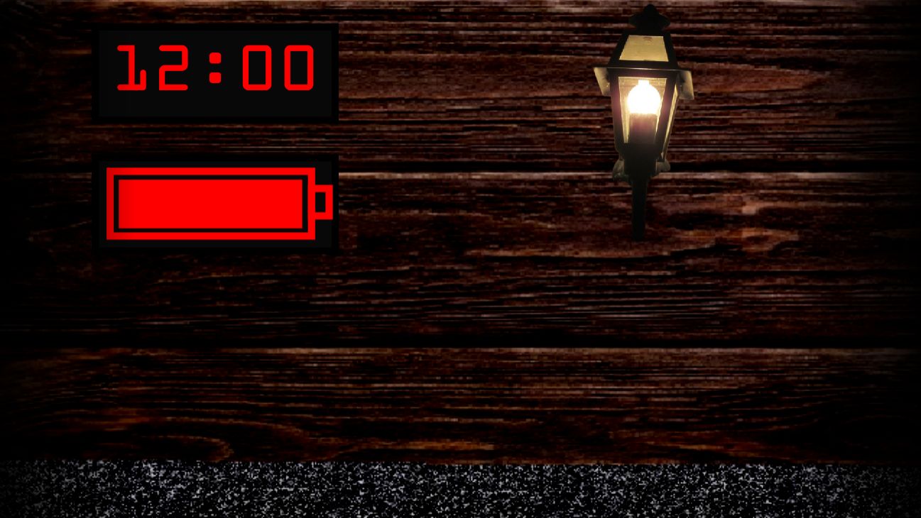There's an intruder in your house at night. Locate the intruder and hold the doors closed. Turn off the lamp to conserve power since the intruder also turned off your electricity, now you are relying on a limited electricity source.
