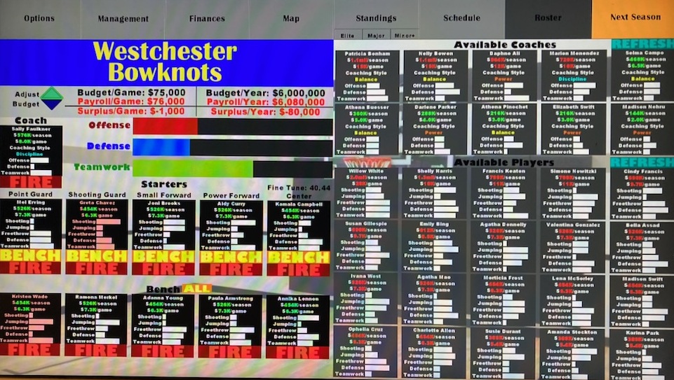 This is a surprisingly good sports management game. You are owner of a basketball team and have to pick the right coach and players to advance in the game, your goal is to have your team become Elite League champions.