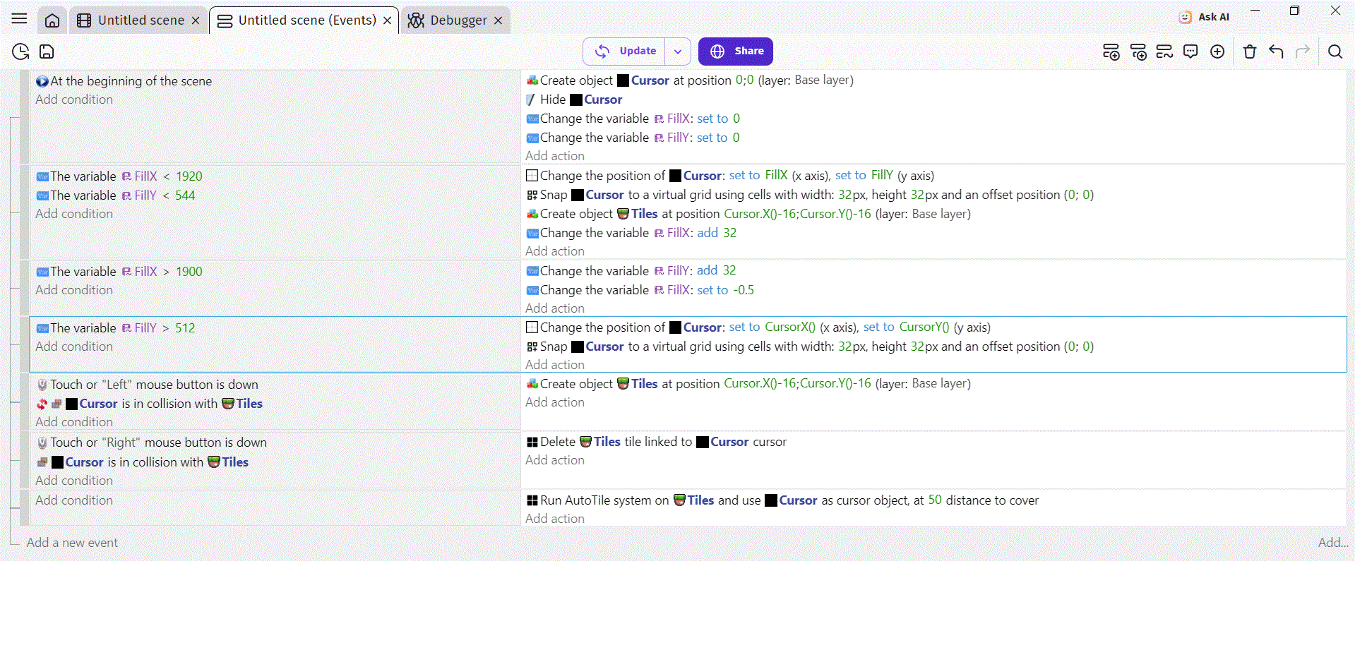 I bought the AutoTiler, it's amazing. my question is how do i make the Scene start fully filled instead of drawing it full?