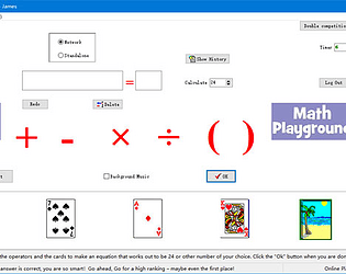 This game can not only use 24 as the target total but also any even number from 24 to 40. All calculations have a record. The record includes questions (four numbers), the correct answer, the time it takes to answer, and the result (correct/wrong). Players can review their history.