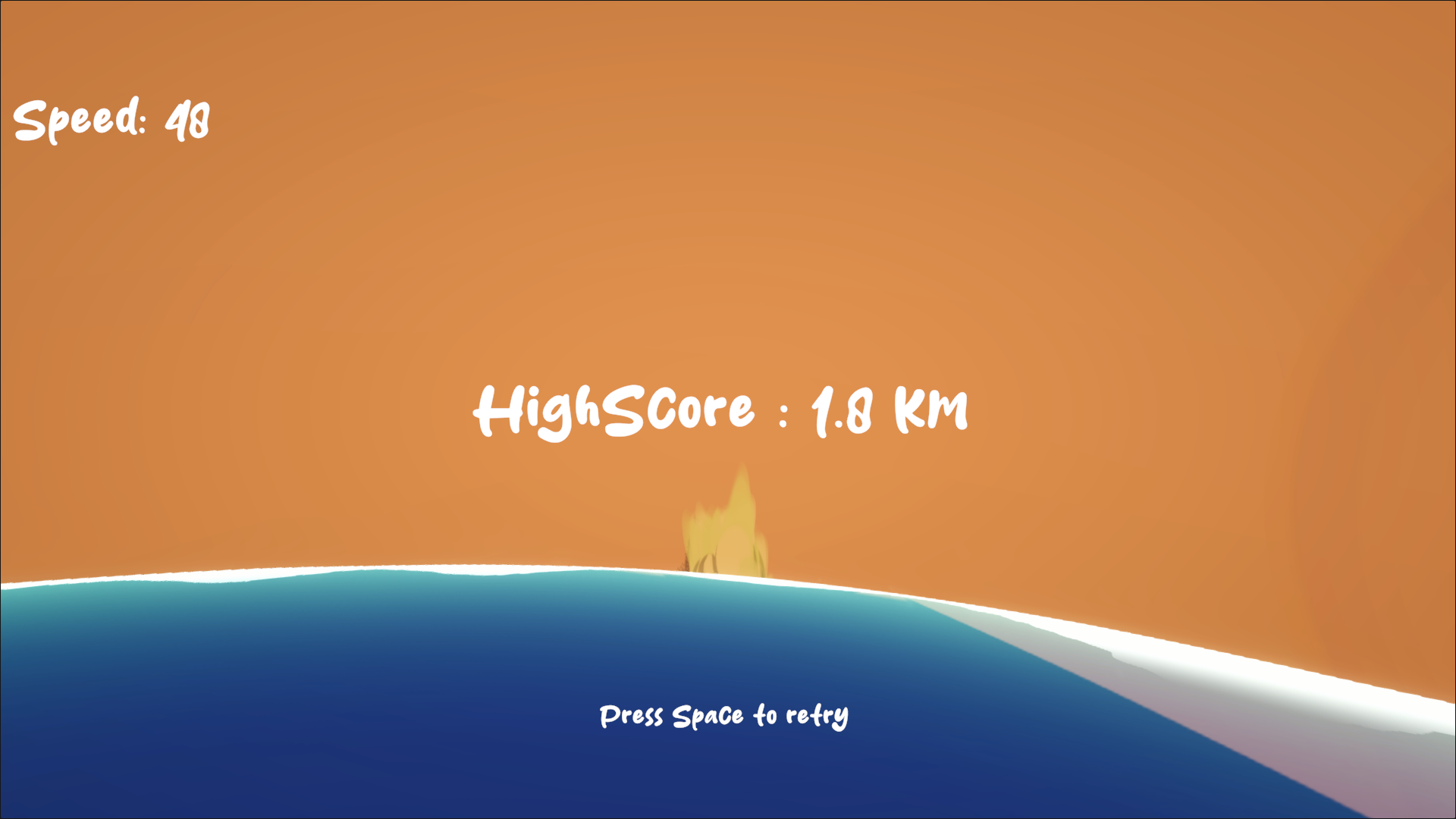 Overall I love the presentation (great for a 2 day jam). I think this character might be better for some other type of game; surfers don't generally surf on land (lol).