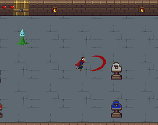 This game is a bit difficult to play with a mouse and keyboard, but it seems like it would be a lot of fun on mobile. Giving the enemies health bars was a nice touch. I think having the help screen include a description of the different power-ups and what they do would have been a helpful addition, as well as spreading the enemies out a bit instead of having a large group of them all attacking the player at once.