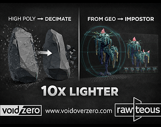 What is Rawteous? A Unity package that automatically generates impostor billboards from your 3D models, reduces your geometry for LODs, lowering draw calls and memory usage while maintaining visual fidelity at distance.