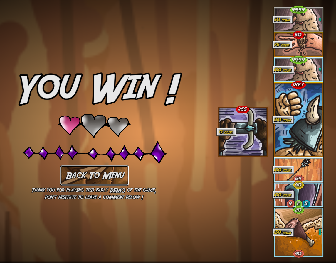 I finished your demo, I do like Idle games. But something in the game doesn't communicate that it is Idle. It seems too symmetrical, so I kept expecting the enemies to threaten me, which they didn't.