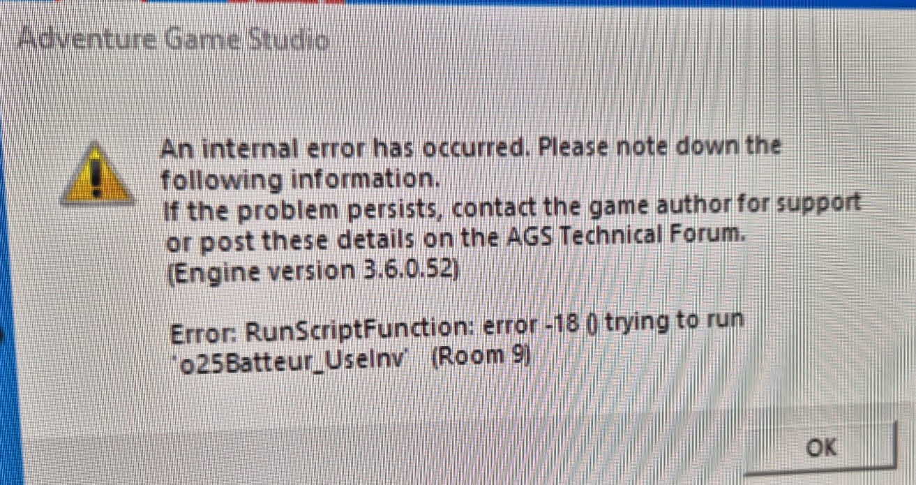 In level 9 when applying corkscrew on mixer the game crushes with error "Error: RunScriptFunctionError: error -18 () trying to run 'o25Batteur_UsrInv' (Room 9)"
