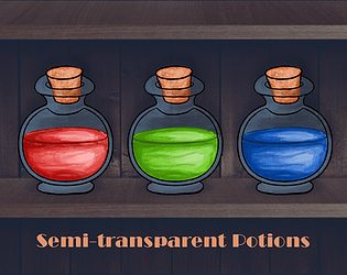 Semi transparent red, green, blue potion bottle illustrations