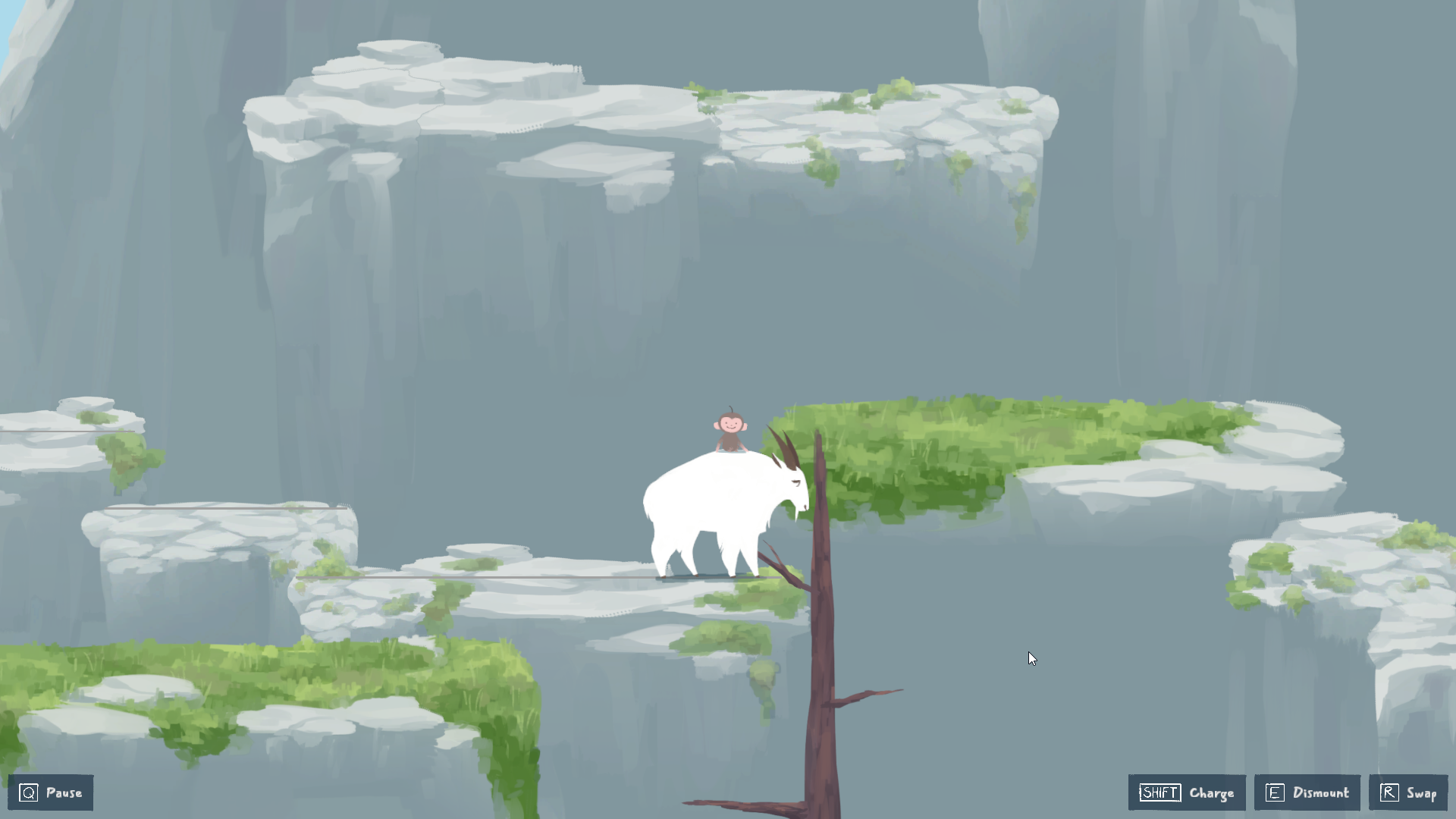 I ABSOLUTELY loved this game! It is just sooo endearing and adorable. I loved the interactions between the monkey and the goat, and the little sfx you have when the dialogue plays adds so much to the charm. The platforming almost feels zen, though maybe a better indication of where the platform hitboxes are could help, since sometimes the ledge sprites can be a bit deceptive. Otherwise the movement and input feels really consistent which I think is a very important aspect that gets overlooked in many platformers. It just feels good to play this one.