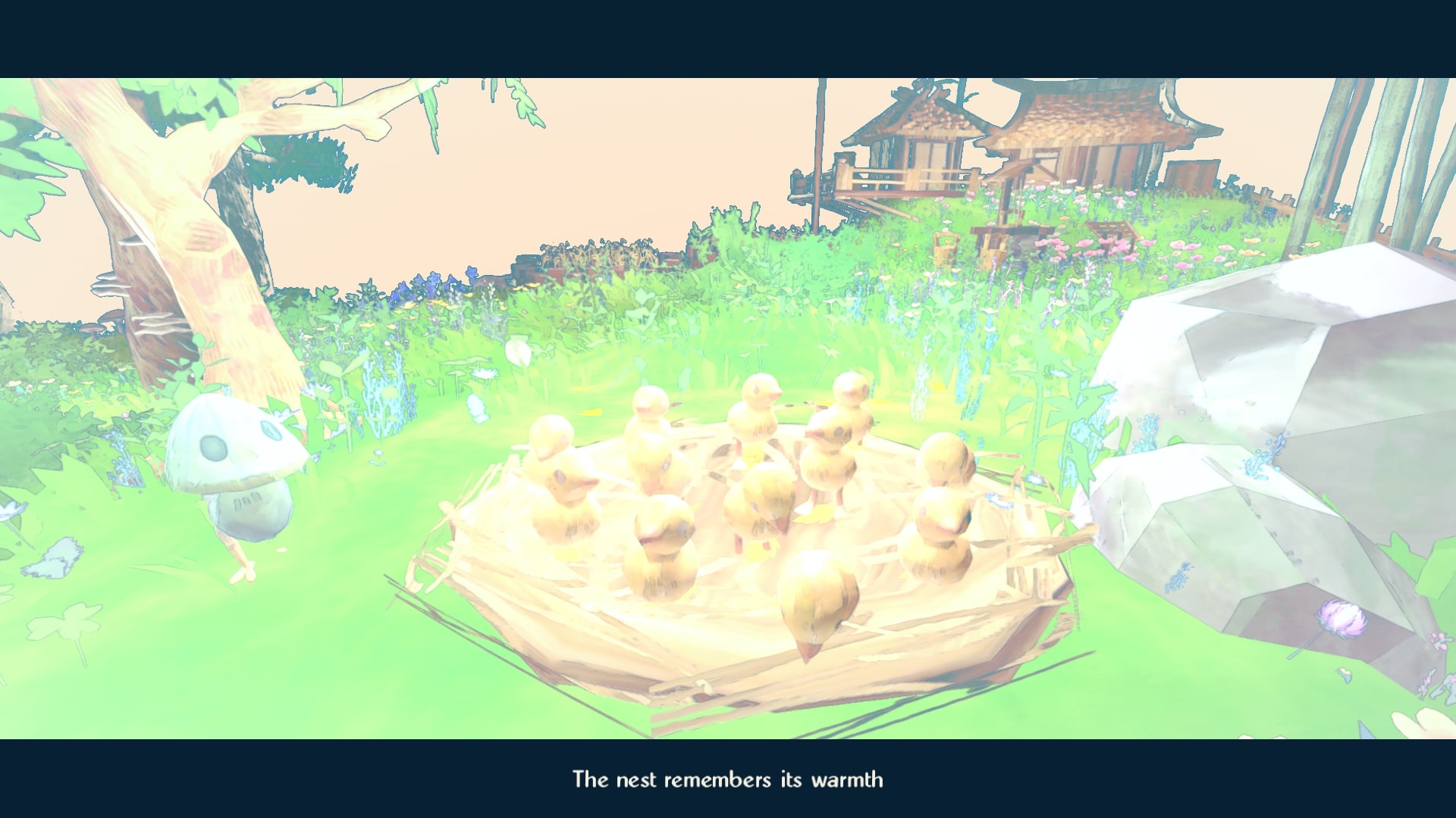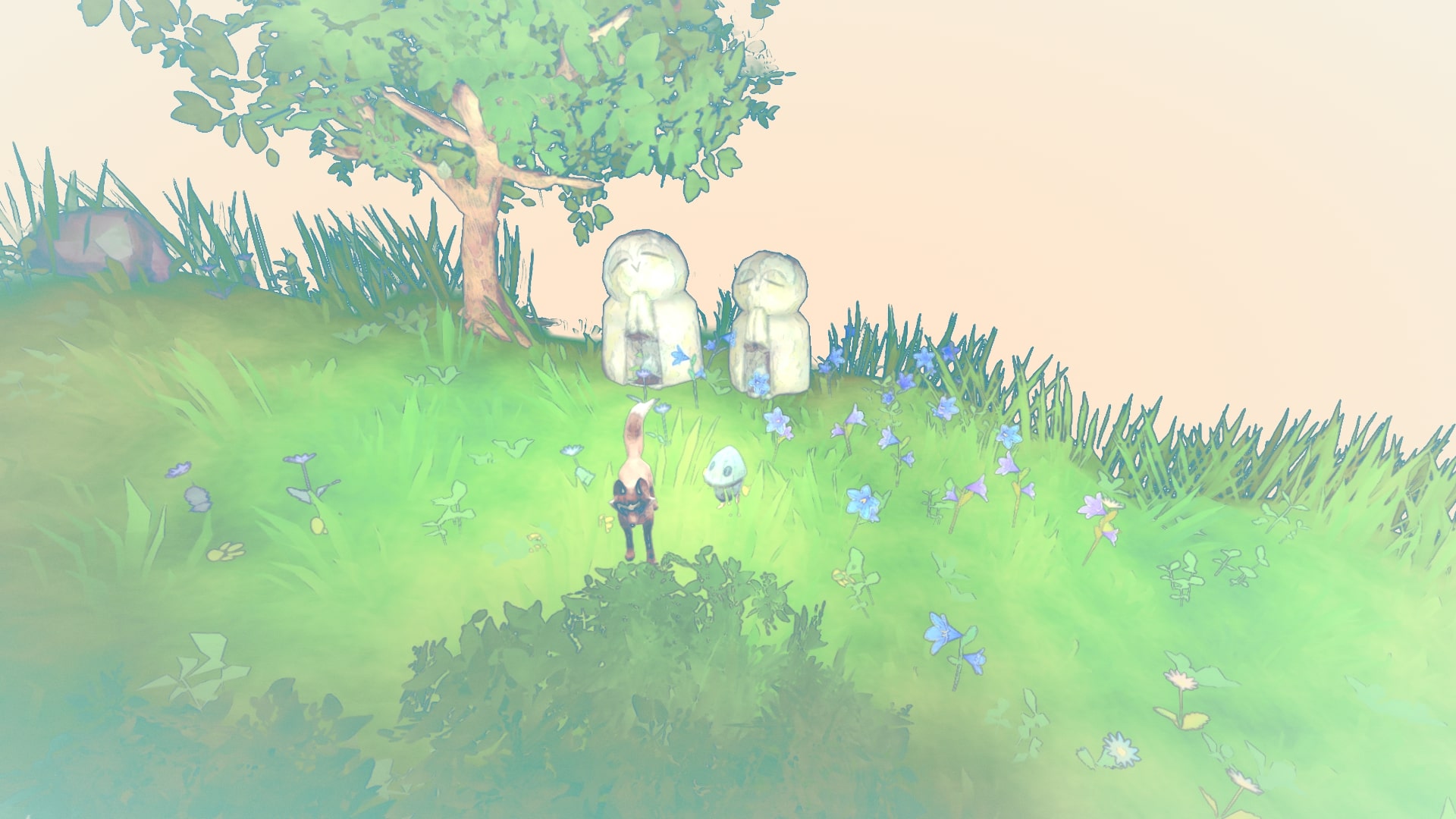 Absolutely gorgeous art direction! It is just so aesthetically pleasing to the eyes, the pastel colour palette on that slightly off-white canvas, with the world rendered in that washed watercolour post-processing effect is just SO GOOD. It’s especially beautiful when the world slowly reveals itself and it feels like a painting being gradually drawn on a canvas.