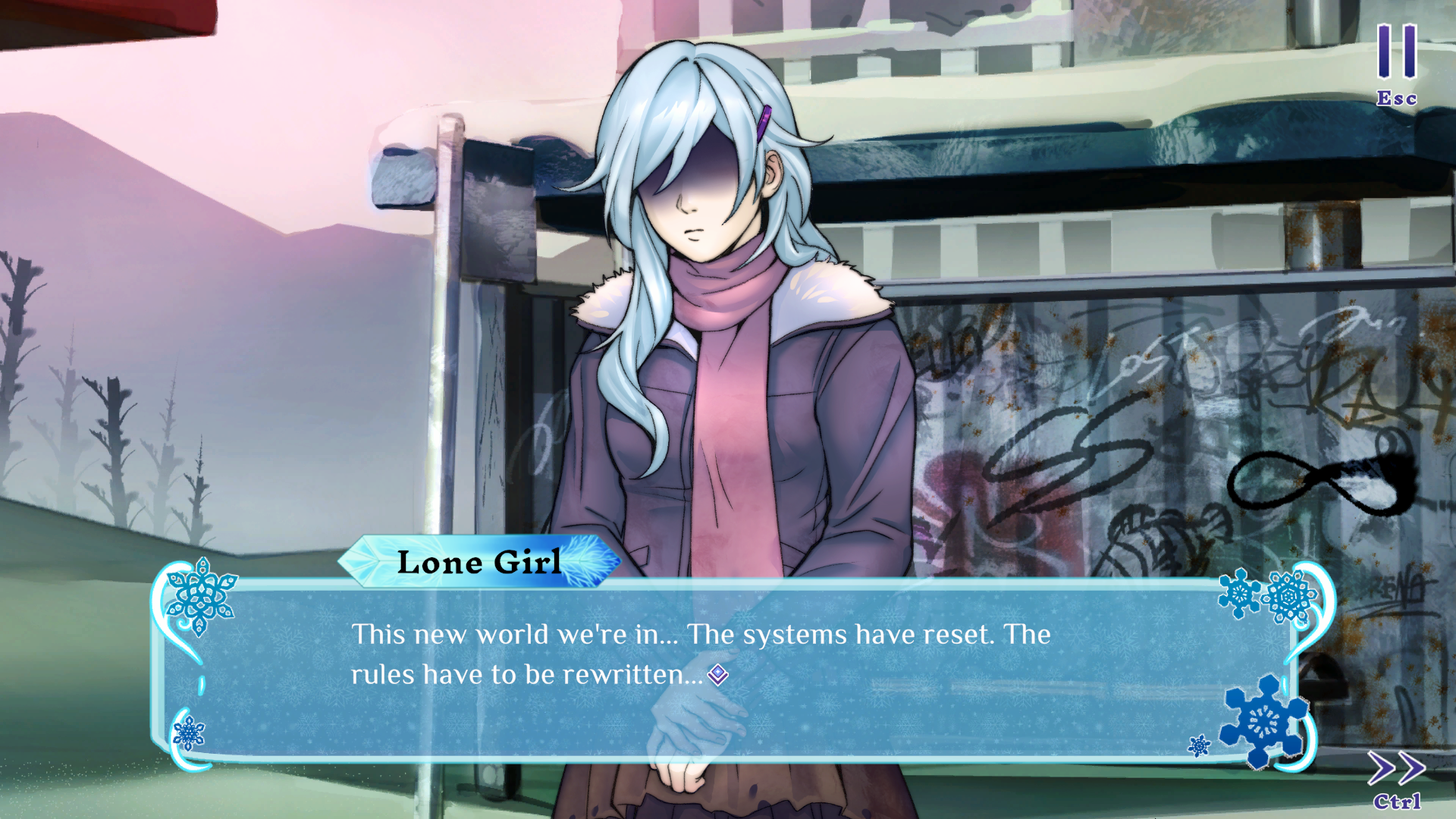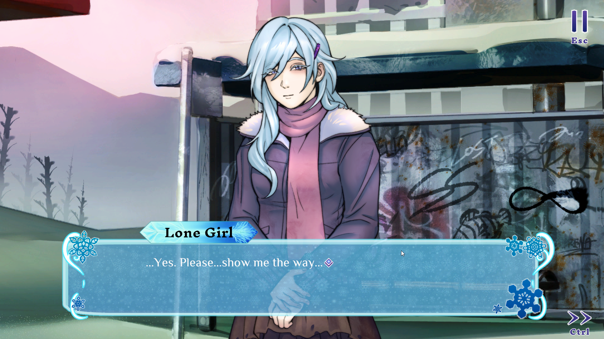 Great work on the art, UI visuals and music from the team! Everything binds the whole essence into a thematic congruency , especially loved the way the big ice crystal provides a visual cue for the completion status to the player. The music is tense and foreboding, which greatly enhances the atmosphere. Very mature character artstyle as well, while being anime-inspired, it has its own individuality to it, so it feels unique.
