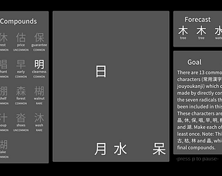 A game where kanji fall from the top of the screen and you have to combine them into more complex kanji.