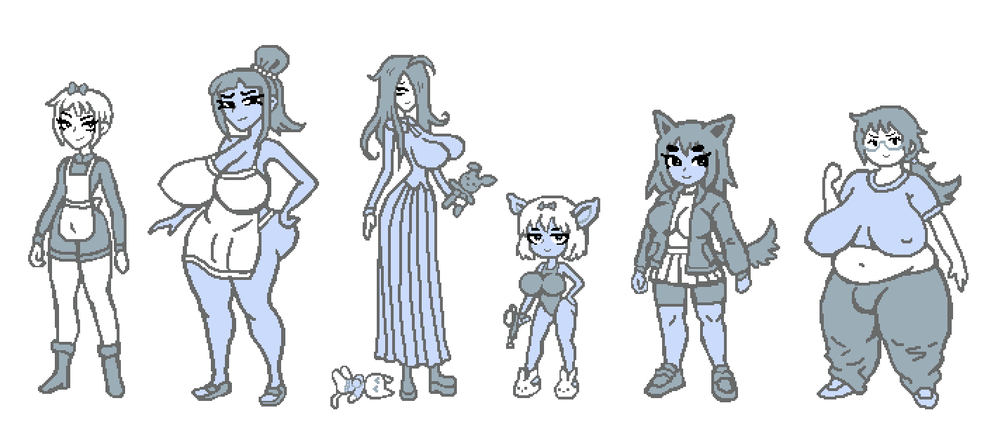 I have a very ambitious dream game planned for this year, so I'm both eager and a bit nervous to get started. It'll be a first-person turn-based dungeon crawler (probably with no actual dungeons in the initial release). Various locations on the map such as shops will "change" if your party members get stripped in combat and run away to hide there. Like most of my games, I plan to keep working on it for at least one more year after release, but I'd like to have a fully finished mini-version of the story ready for the jam release. There are a LOT of different systems that I'll need to put together to make it work, so I'm hoping to have a basic playable version of the game ready by the end of the second week and focus on the horny stuff for the remaining two.