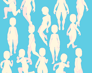 128X256 8-directional blank sprite base for a female character. Includes idle, walk, run, and jump animations.