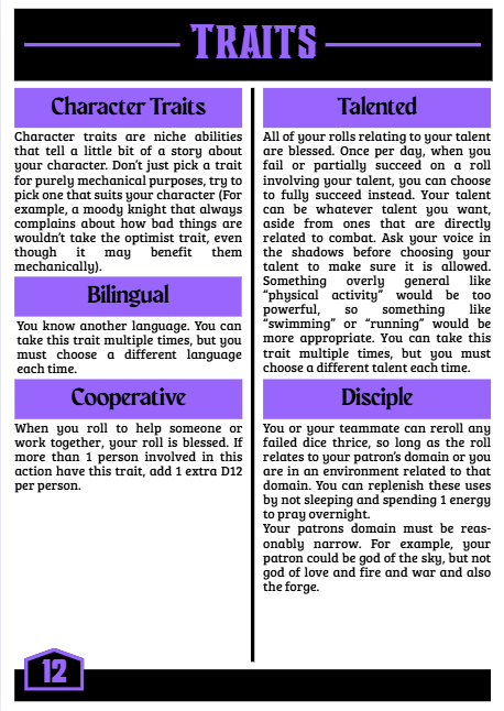 Hi! This is twixthaven, my 2D12 based ttrpg. its still early in development, but I would really like some feedback on. Any feedback is welcome, from balancing issues to simple its not fun to "hey that's a pretty empty bestiary". Its about ~20 pages long, but even just reading the 1st couple pages would be greatly appreciated.
