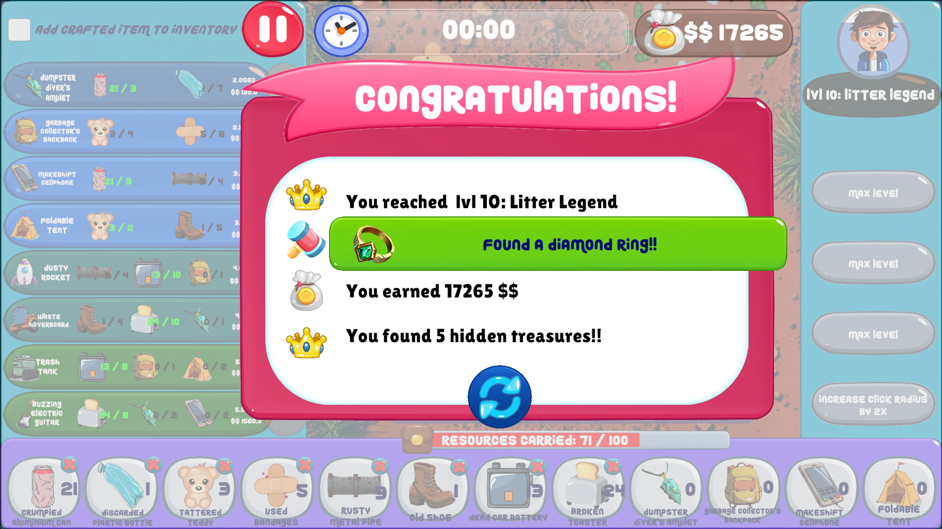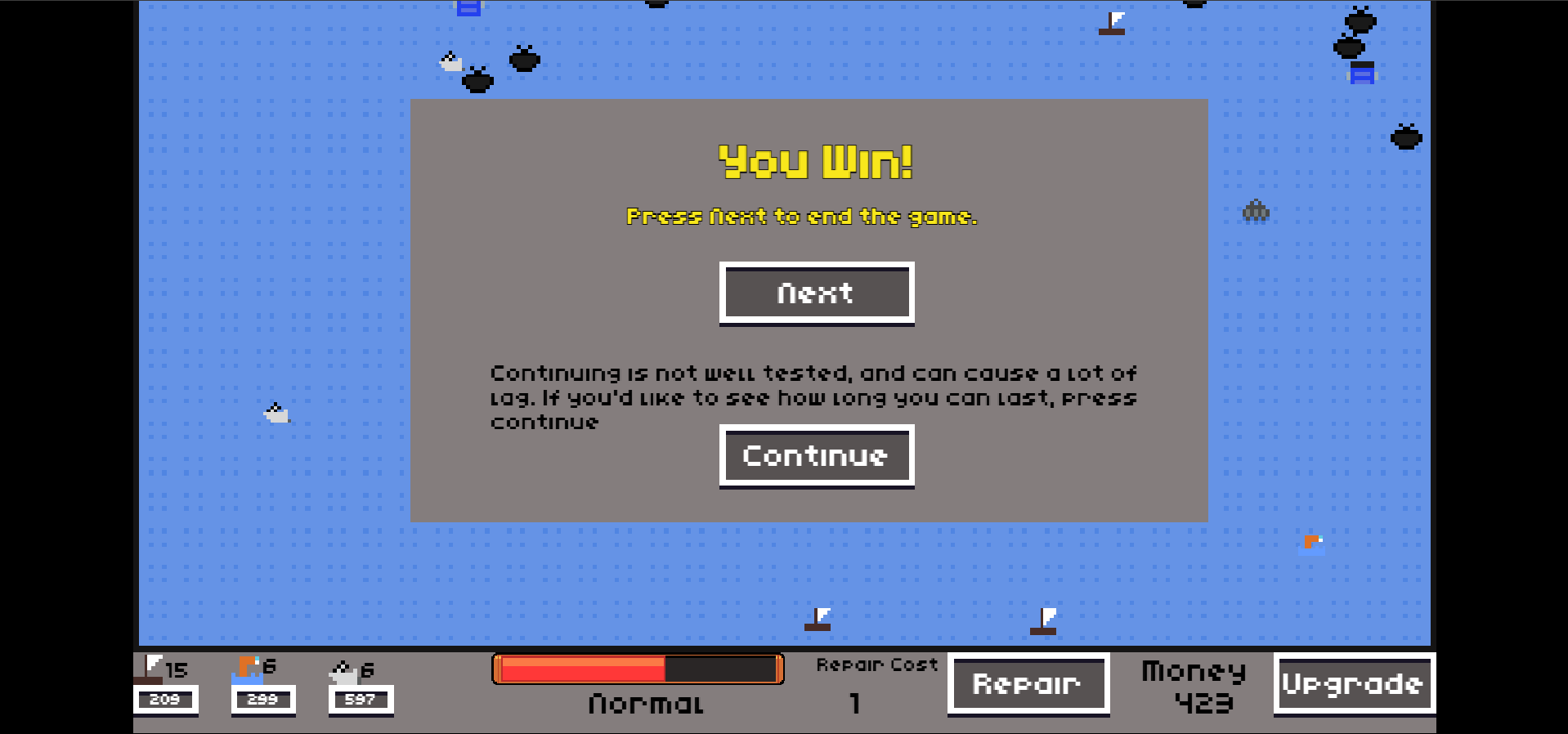 I liked the AI of the upgradable ships, they helped, but you couldn't fully rely on JUST the ships if you wanted to completely avoid receiving damage, which prompted engagement. Not sure if this was intentional, but it was fairly difficult to click on the trash, maybe having an upgrade to expand the hitbox of the click? I got roped into the game until completion! I would have liked to see more of an interpretation on the theme though, like what's IN the bag of trash being a resource (like the trash in the bags of trash can be ammunition for a projectile for some of the ships, and the projectiles can do different things depending on the type of trash. You can also have ships that can't use this trash resource, so they have to touch the dock in order to pass the trash on to ships that CAN use it, if that makes sense). Great job on engaging gameplay!