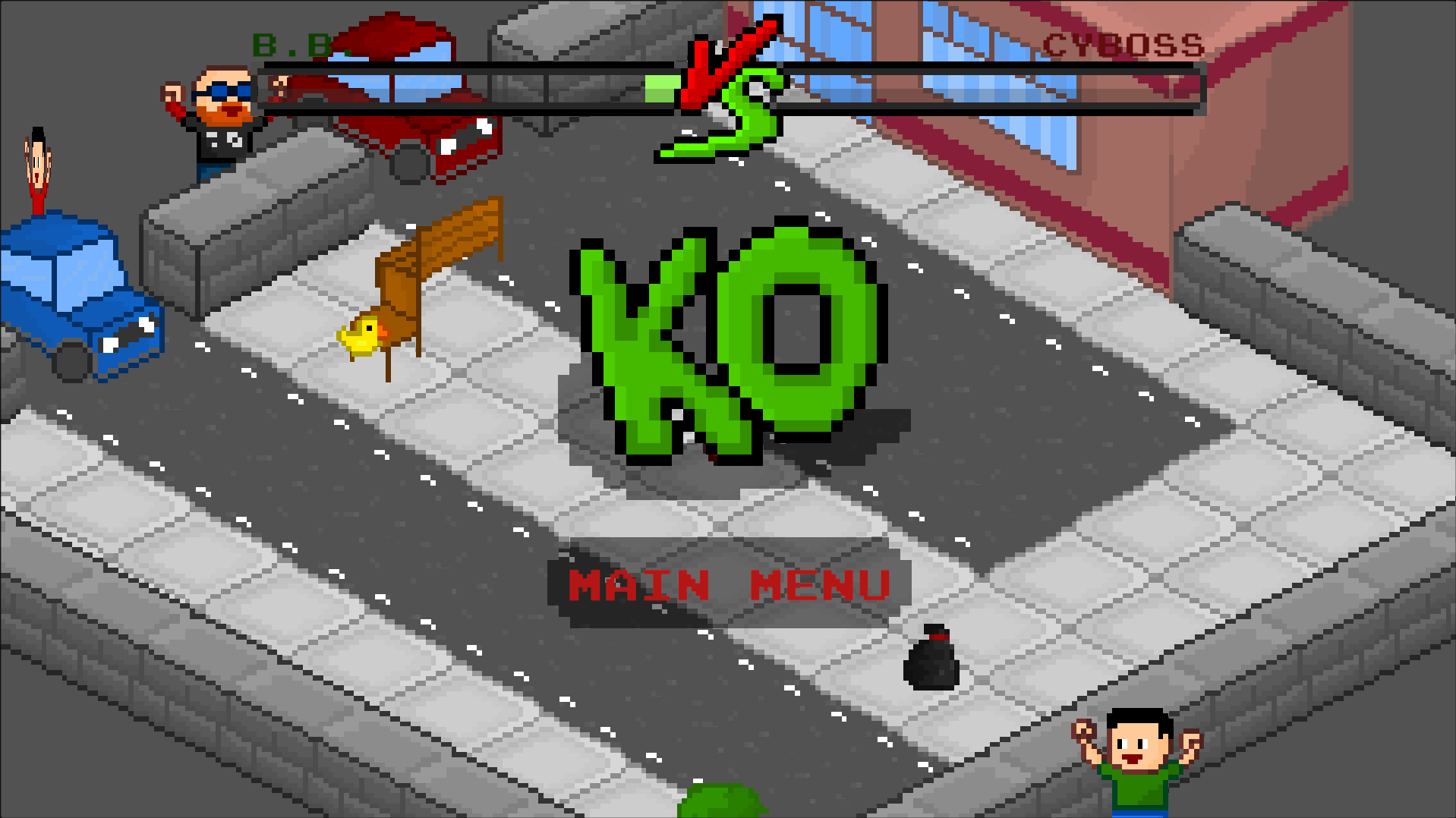 Yooo, well done! I like the whole fighting game round system thing you got going on here. Using what the audience throws in the crowd along with the crowd itself is also a neat use of the theme. My only gripe is the lack of telegraphing of the bossman's dash attack- it's without warning, and given the collisions of the items you pick up, there isn't much room for dodging it, so I relied on picking things and throwing it fast enough and praying he didn't use the dash. Otherwise, it's a pretty cool experience!
