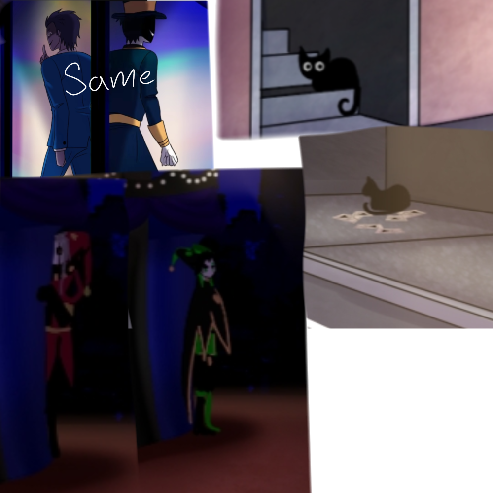 At the bottom of that you see, Pierrot and harlequin. Depending on who you choose you'll see them in the background. This screenshot was from pressing on the black tent multiple times.