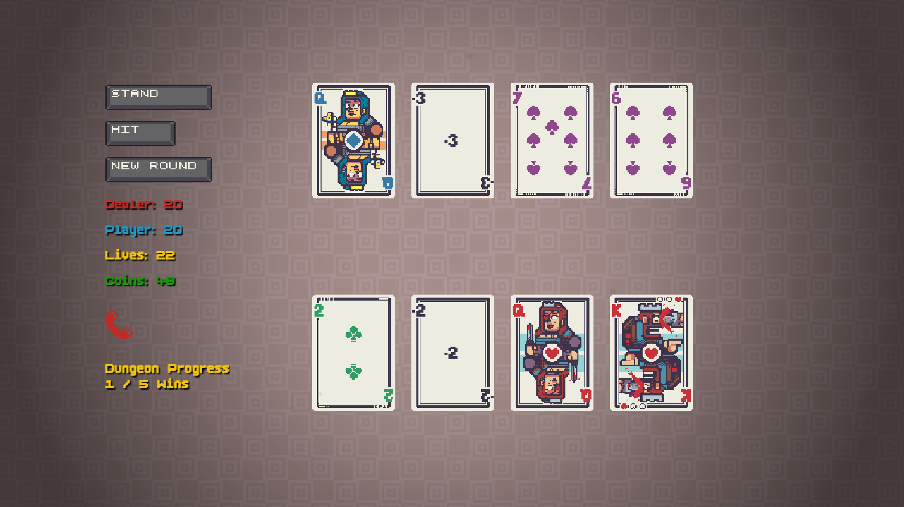 Hi everybody. Looking for some feedback about the demo i released for one of my games. Its a 2d roguelike card game based around blackjack with dungeons, shops and special abilities. You can play by clicking here ----> PLAY HERE (https://istvantoth28.itch.io/busted)