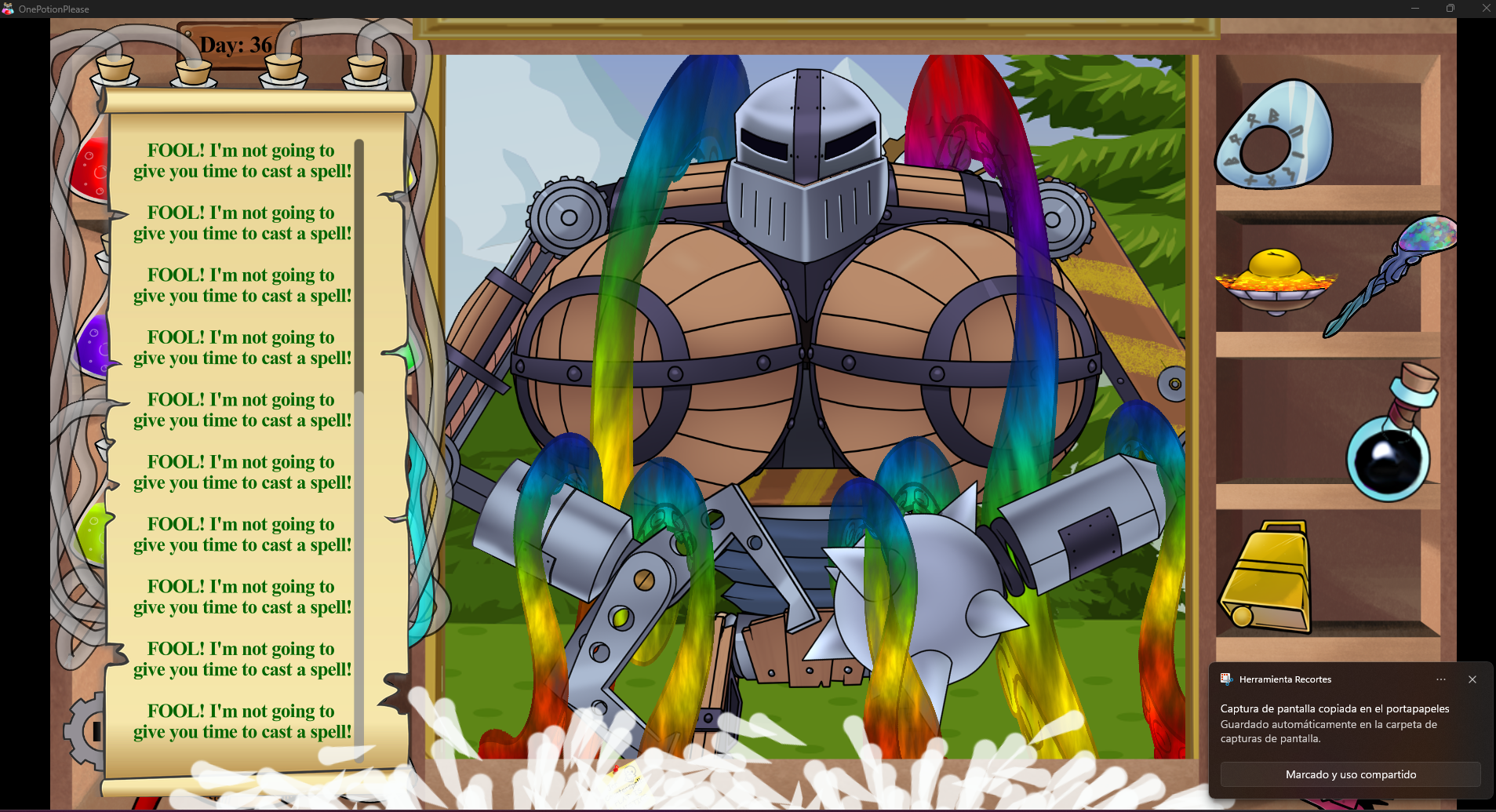 Sorry, but I don't see it. Could you point it out or something? (i just do the battle once more, it looks like a bug when u use so much the tentacle wand)