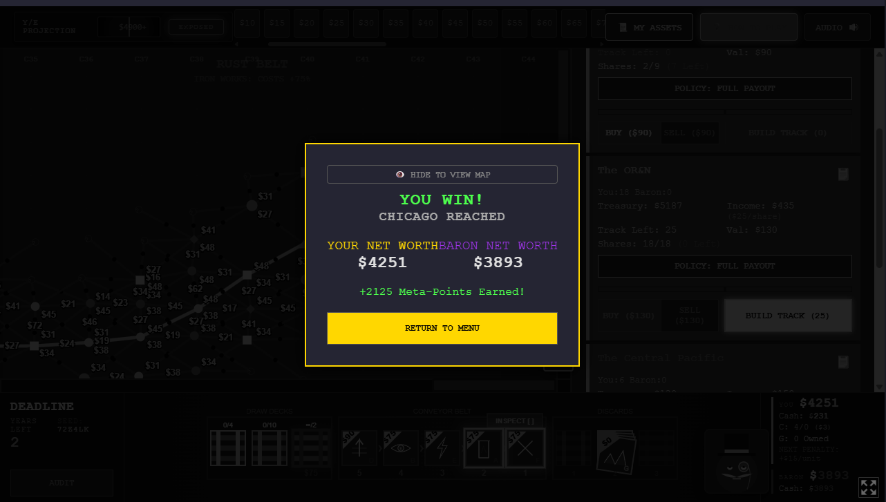 If you happen to play, house rules might be needed when hooking into the main prebuilt track. In theory on this map, 2, 4 and 5 might be able to get in there. If there are ties for anything, apply company numeric order.