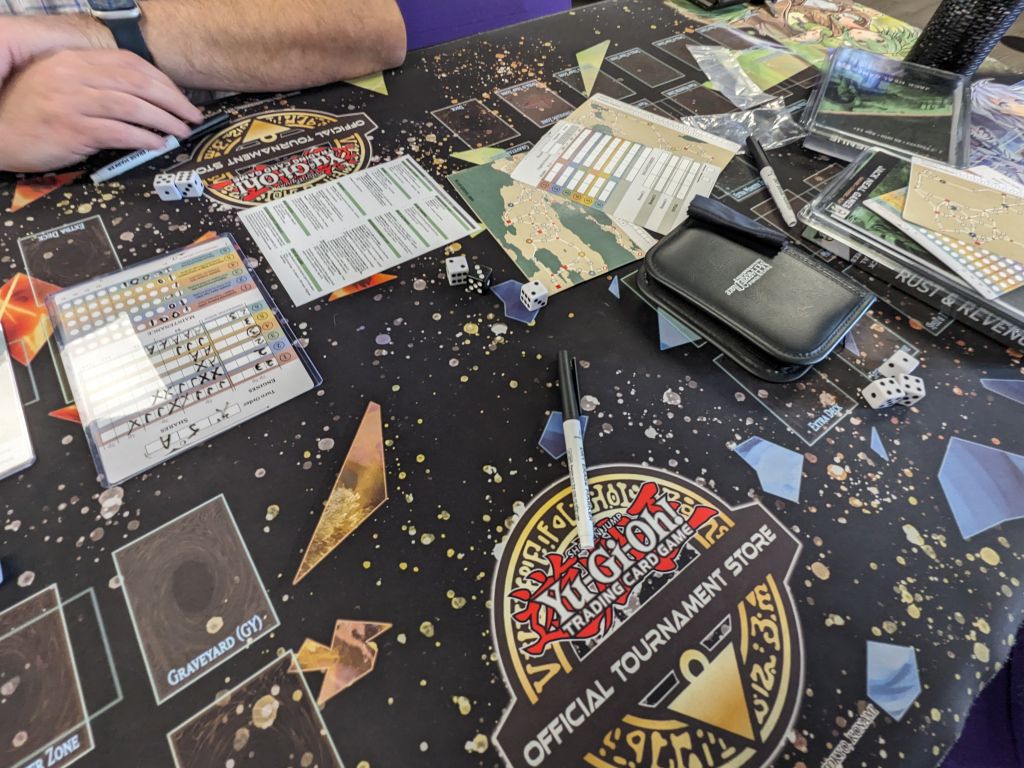 We had four games - a couple 3-player, one two-player and one solo teach. It is always inspiring to see your designs being explored by others real time. Everyone had a good time which is what it's all about. Two other tables out at that time were Brass Lancashire and Root so R&R was in good company.