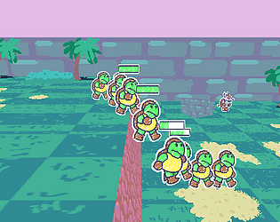 Shell Kingdom is a game where you go on a small adventure with a bunch of turtles to try to take back your island. Control many turtles at once to solve puzzles, use the environment to create formations, and engage in combat with armadillos. The game can be thought of as a "mass" game like Kirby's Mass Attack or a light-RTS like Pikmin. Features a "paper" style aesthetic and a small story.