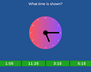 Great ideas! I implemented colors for clock hands. You can set the hours or the minutes to whatever color you want in (Black, White, Red, Orange, Blue, Green, Yellow, Purple). Also added increased difficulty (just more wrong answers). --just uploaded so may take a while for latest build to be live on itch.io