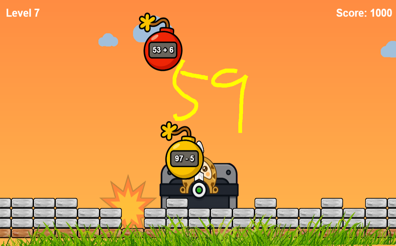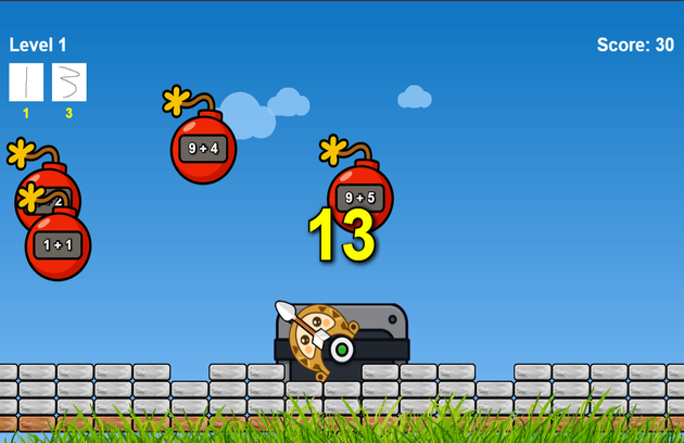 Defend against incoming bomb attacks by entering numbers using gestures.